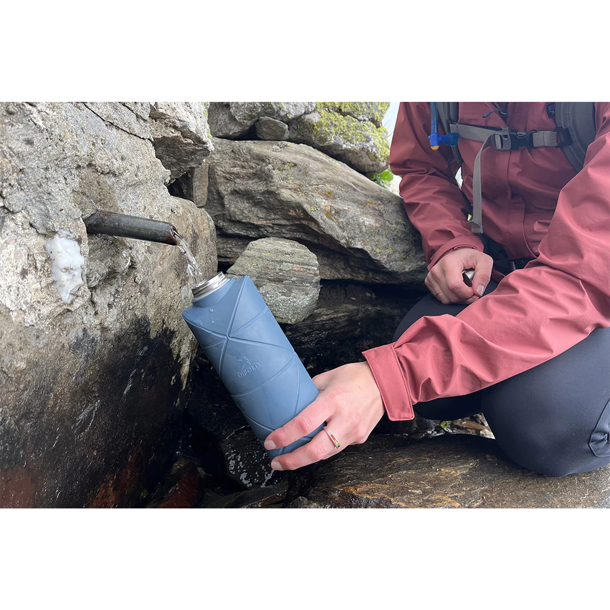 Diese faltbare Flasche findet auch im kleinsten Reisegepäck einen Platz! Denn sie ist ultra klein und leicht. Trotzdem fasst sie genügend Flüssigkeit, um auch unterwegs hydriert zu sein. Perfekt für z. B. Bikepacking!