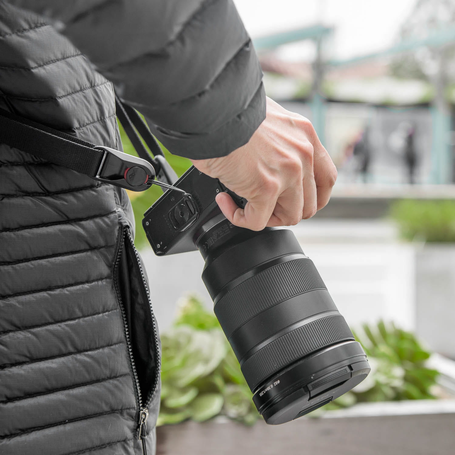 Die Anchor-Mount-Platte kann benutzt werden, um Kameragurte am Stativgewinde einer Kamera zu befestigen. Die Platte ist viel flacher und schmaler als ein normaler Gurtadapter. Sie funktioniert für alle Peak-Design-Gurte und für markenfremde Tragegurte.