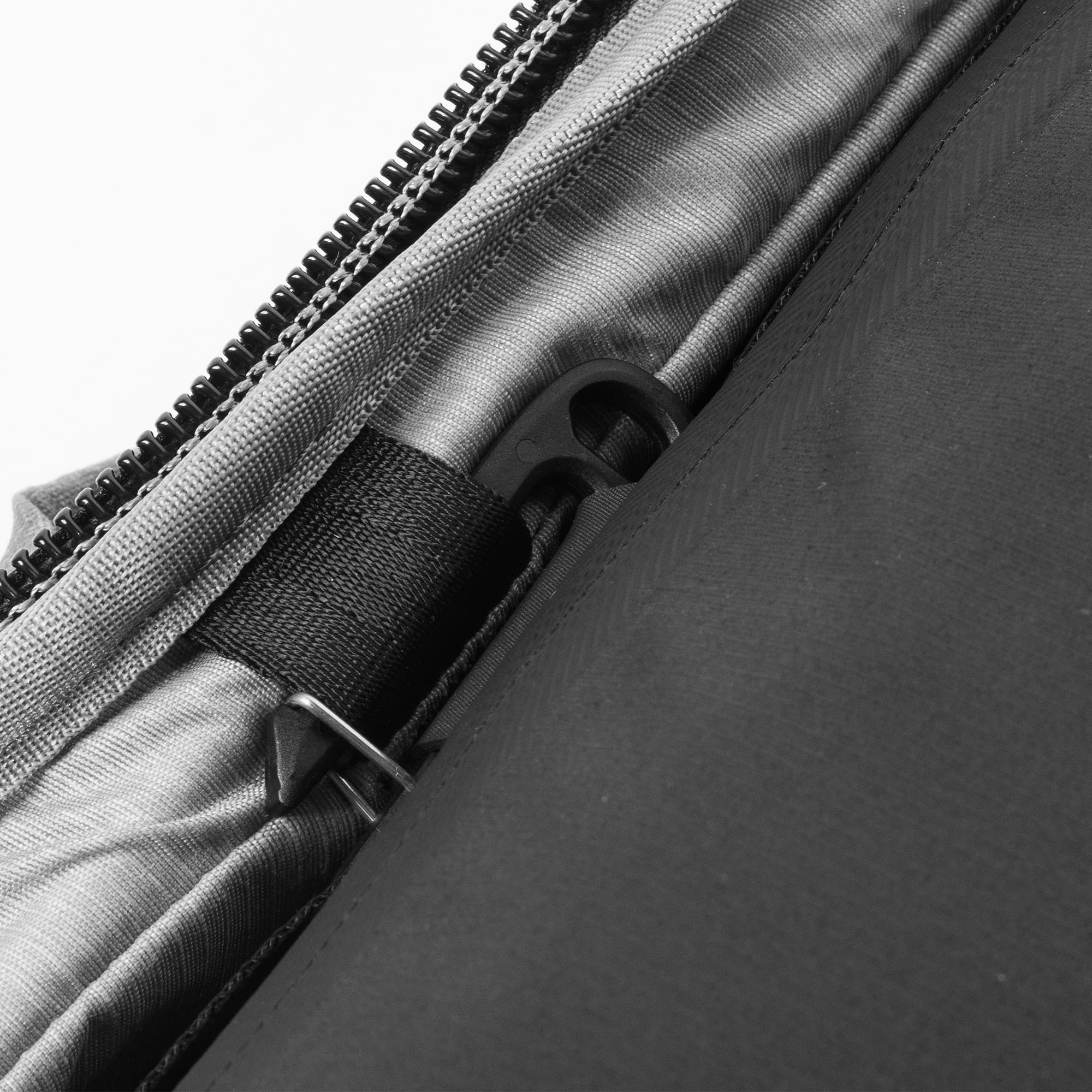 Natürlich will der Cube nicht nur ordnen, sondern auch verlässlich schützen. Dafür kommen jetzt sogar imprägnierte Reißverschlüsse und verschweißte Nähte zum Einsatz. Diese Kombination bietet einen besonders wirksamen Schutz. Die starke Innenpolsterung im Deckel kann auch herausgenommen werden, wenn sie nicht benötigt wird.