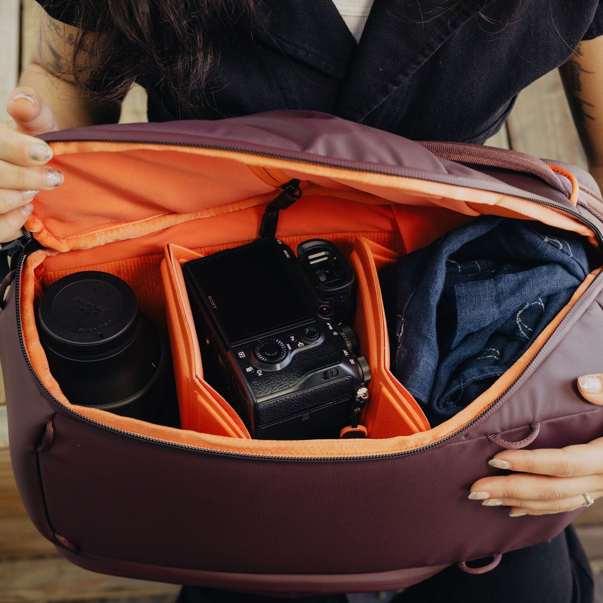 Neben dem ergonomischen, minimalistischen Design punktet der Everyday Backpack Zip - wie der Name vermuten lässt - mit schnellem, unkompliziertem Zugang zum Hauptfach: mit einem wetterfesten Reißverschluss über die komplette Länge des Rucksacks. So kannst du wahlweise von oben oder von beiden Seiten aus auf den Inhalt zugreifen! Gleichzeitig erhöht dieses clevere Detail die Alltagstauglichkeit des Rucksacks enorm: Wenn du nämlich nicht nur deine Fotoausrüstung, sondern auch Alltagsgegenstände mitnimmst. Damit das problemlos funktioniert, kannst du den Innenraum individuell konfigurieren (mehr dazu unten) und so beides problemlos voneinander getrennt verstauen - und durch die Öffnung auf beiden Seiten auch unabhängig darauf zugreifen. So kannst du außerdem den Rucksack von der rechten Seite aus vor den Körper ziehen, um zum Beispiel auf die Kameraausrüstung im rechten Hauptfach zuzugreifen, während die Alltagsdinge sicher in der linken Rucksackhälfte bleiben. Bequeme, unkompliziert verstellbare Tragegurte helfen dabei. Und da die Außenhülle des Rucksacks auch komplett aus 100 % recyceltem, wetterfestem Nylon hergestellt ist, bleibt der Inhalt selbst dann trocken, wenn es beispielsweise im Herbst nach Schottland gehen soll.