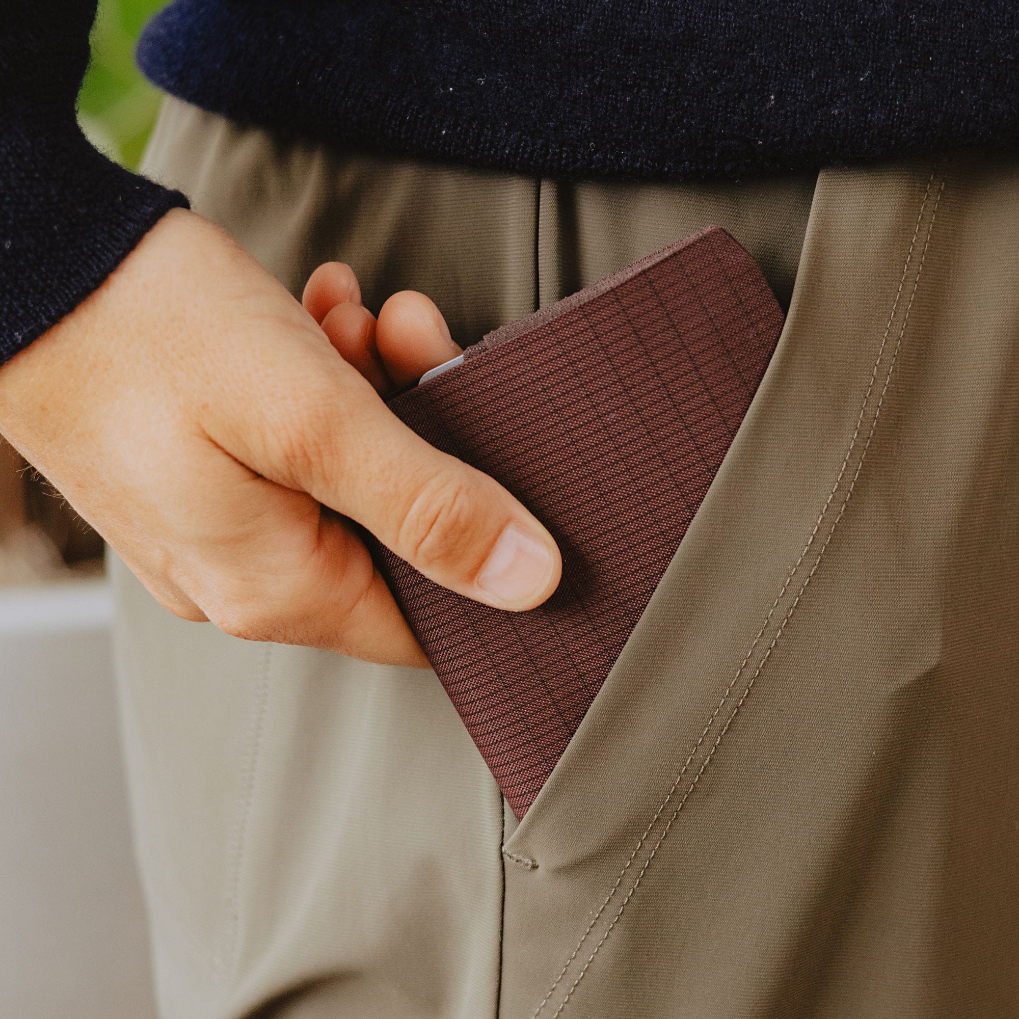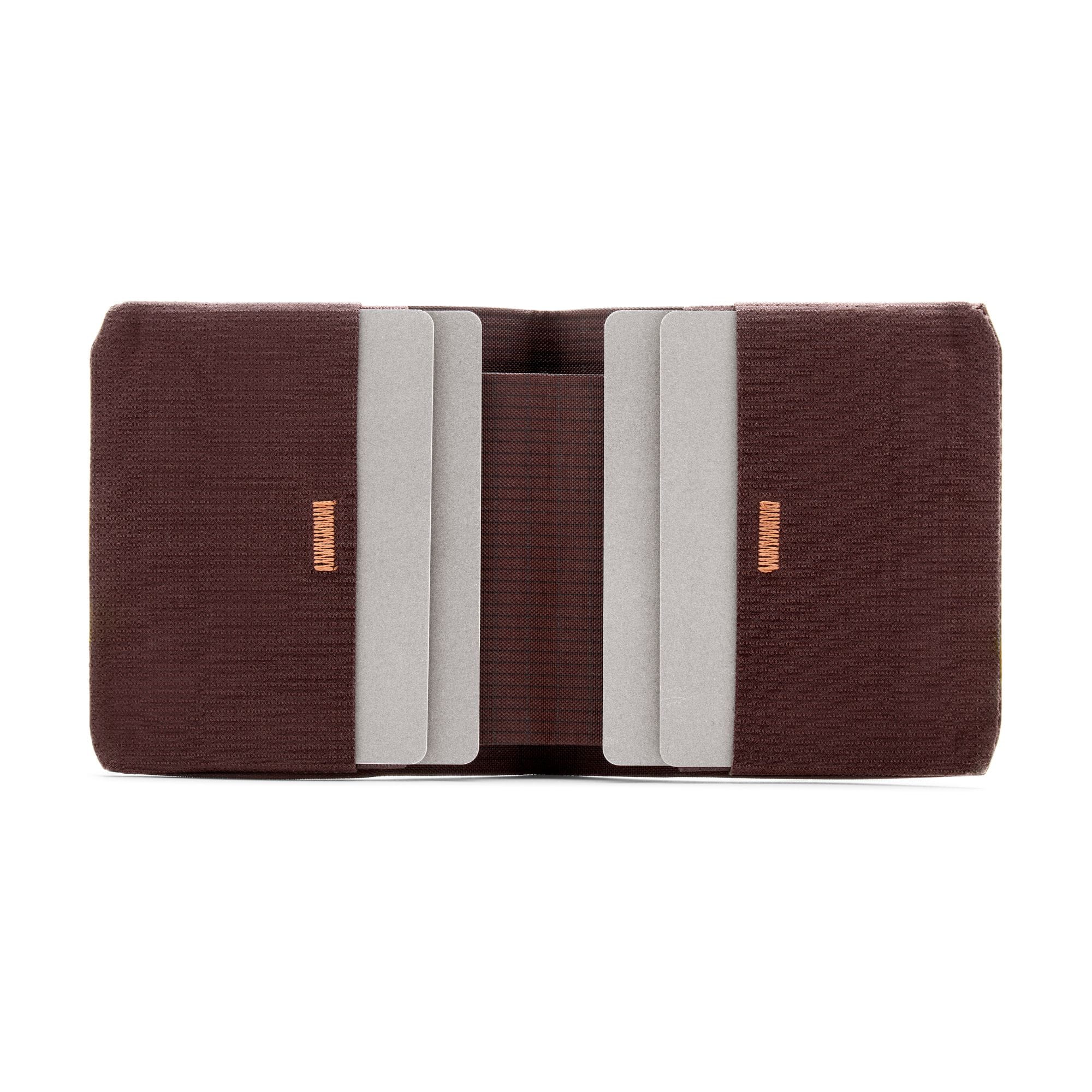 Das Außenmaterial aus TerraShell™ Ultra 210D kombiniert extreme Zugfestigkeit mit Kratz- und Rissfestigkeit. Das Innenmaterial aus TerraShell™ Ultra 70D Stretch sorgt für dauerhafte Elastizität, selbst bei häufigem Gebrauch. Dank PFAS-freier Beschichtung bleibt das Wallet wasserabweisend und ist gleichzeitig eine nachhaltigere Alternative zu herkömmlichen DWR-Beschichtungen.