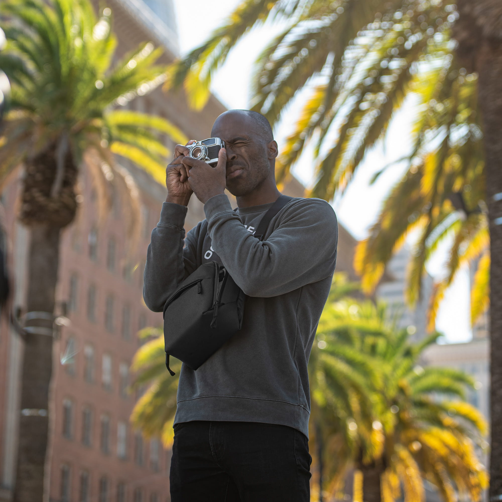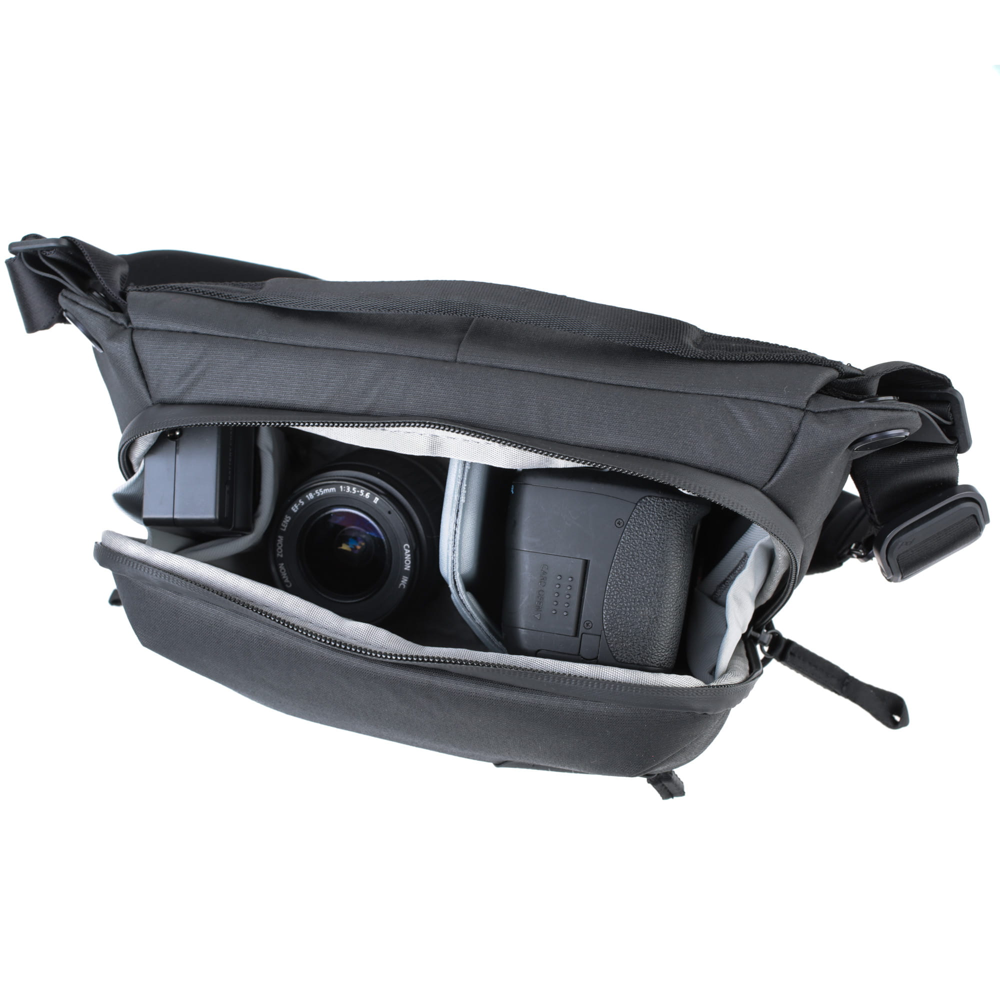 Die Everyday Sling in neuer, besonders kompakter Version. Perfekt für eine minimale Kameraausrüstung aus einer DSLM mit ein bis zwei Objektiven. Mit verstellbarem Gurt - sitzt sowohl als Hüft- oder Umhängetasche optimal.