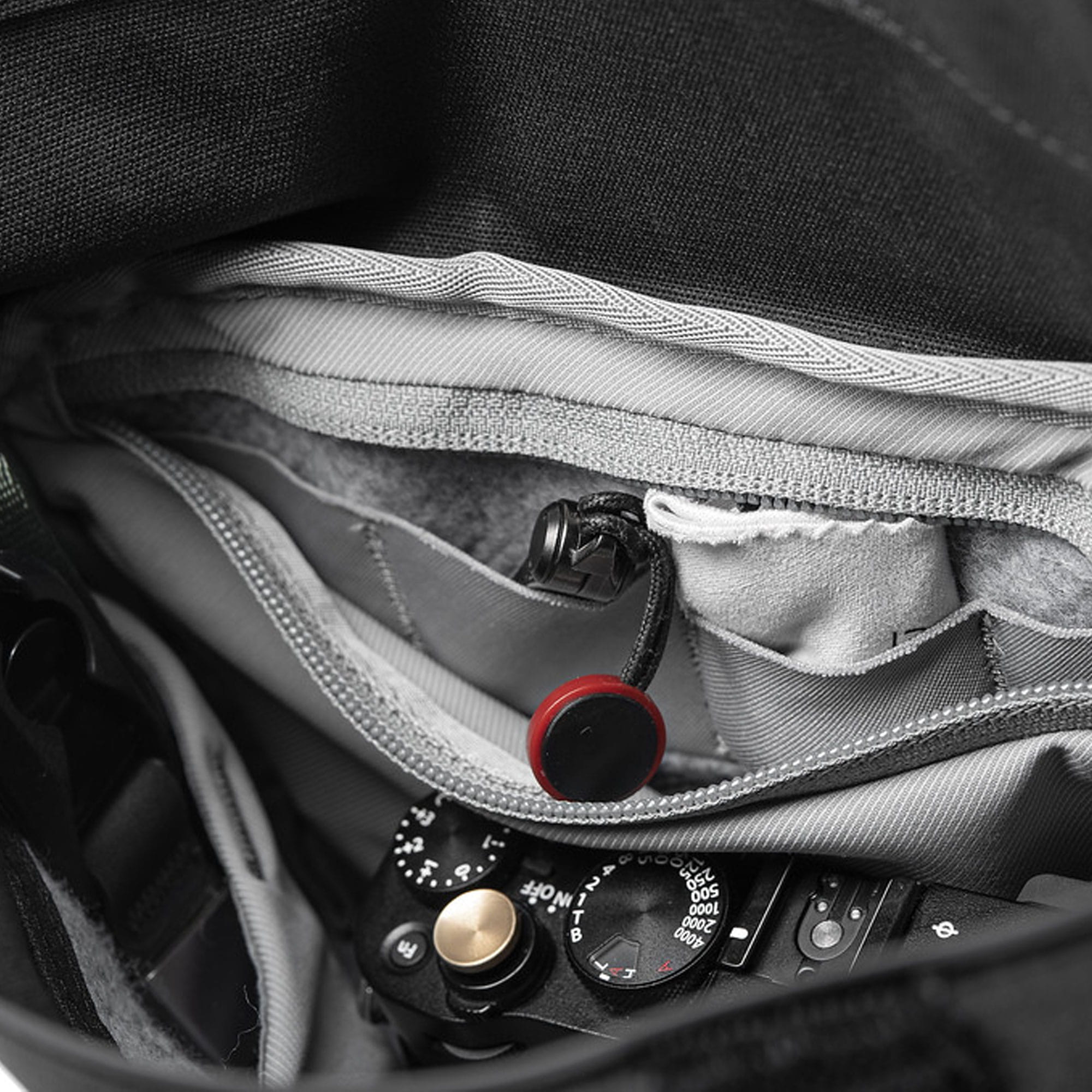 - Schlaufe zum Festmachen eines beliebigen Capture Camera Clips an der Vorderseite der Tasche