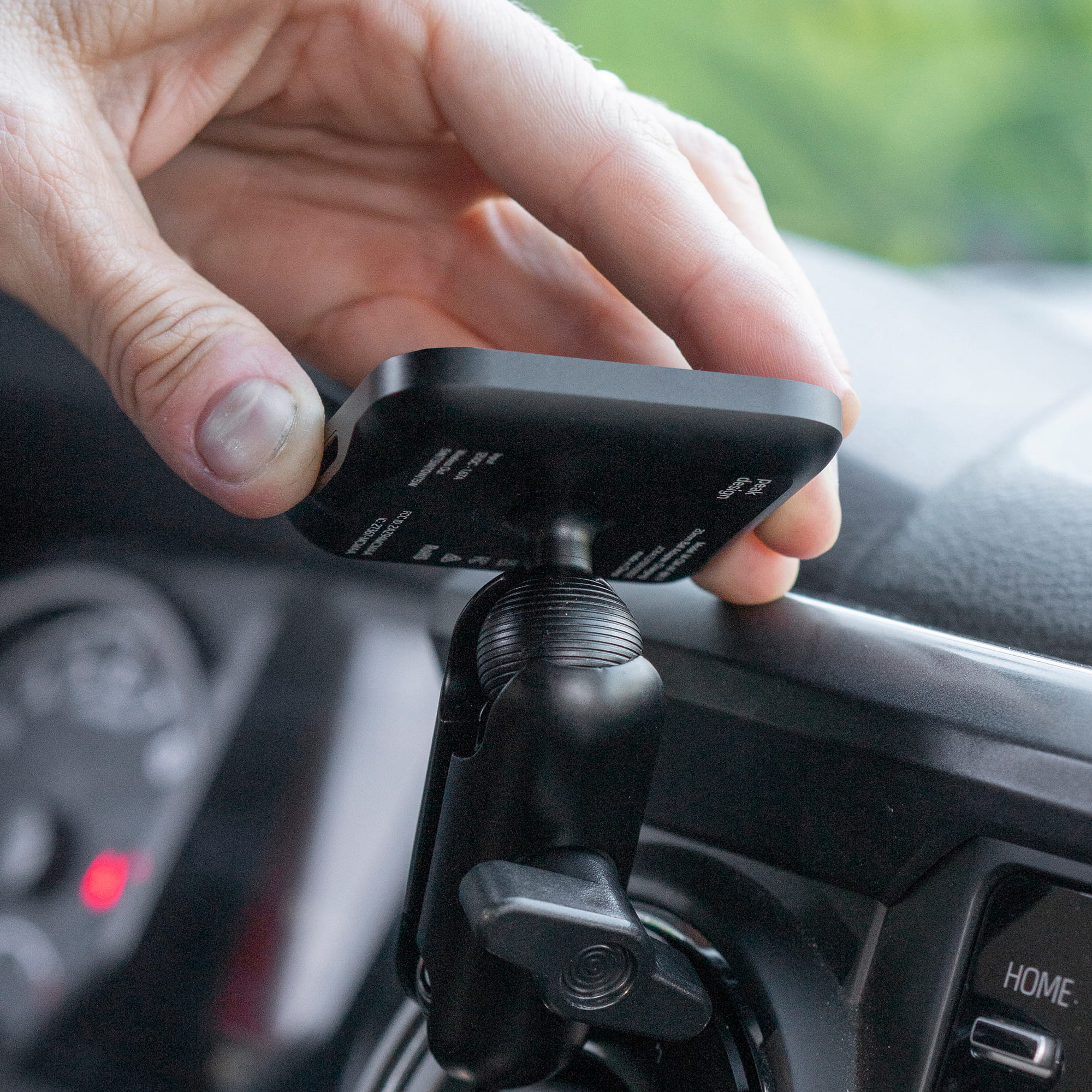 Die 20 mm-Kugel ist mit vielen Haltesystemen unterschiedlicher Hersteller kompatibel, die diese Gelenkgröße verwenden und dank des Kugeladapters mit dem Mobile SlimLink™ versehen werden können. Damit kannst du einen SlimLink™ an vorhandenen Halterungen im Auto benutzen.