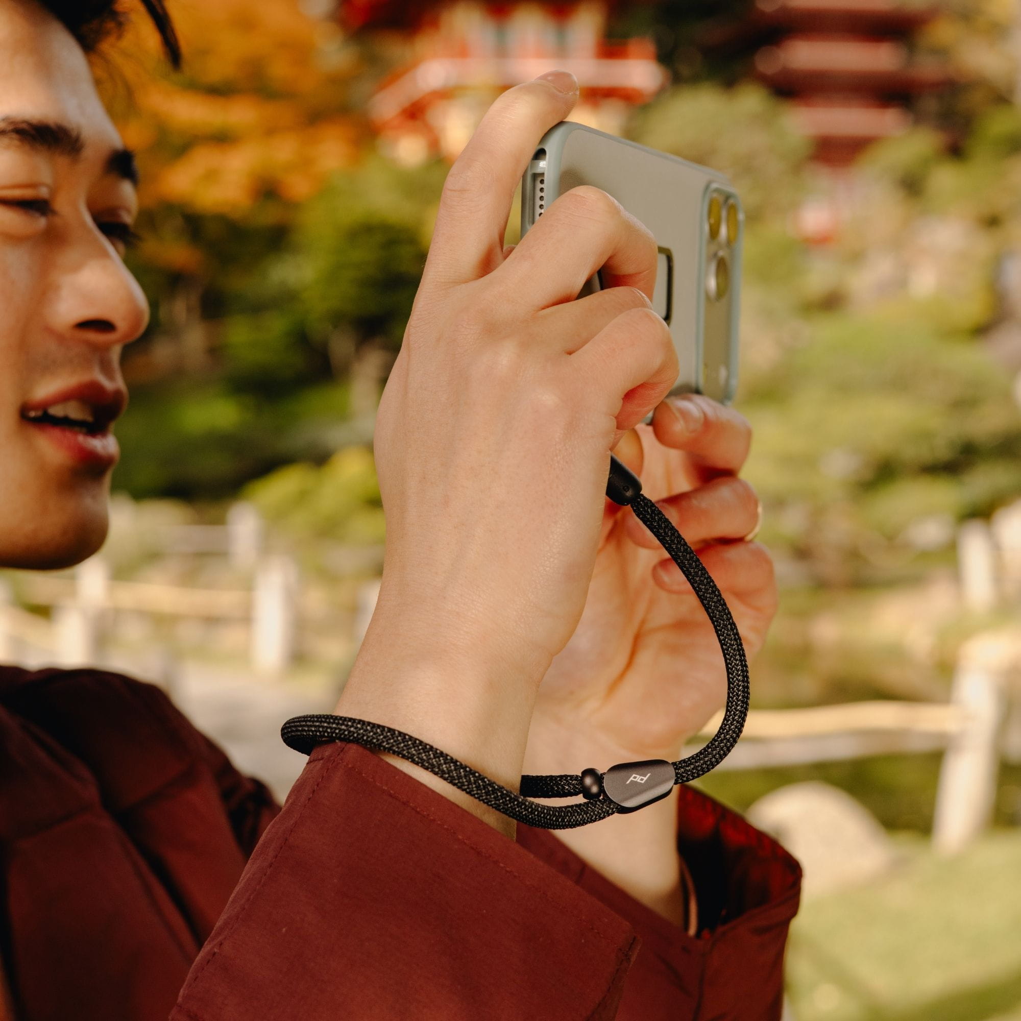 Schlanke Handschlaufe mit schnellem Micro-Anchor-System - die schnelle, stylische Verbindung zwischen Handgelenk und deinem Phone Case, der Kompaktkamera, Schlüsselbund, oder AirPods.