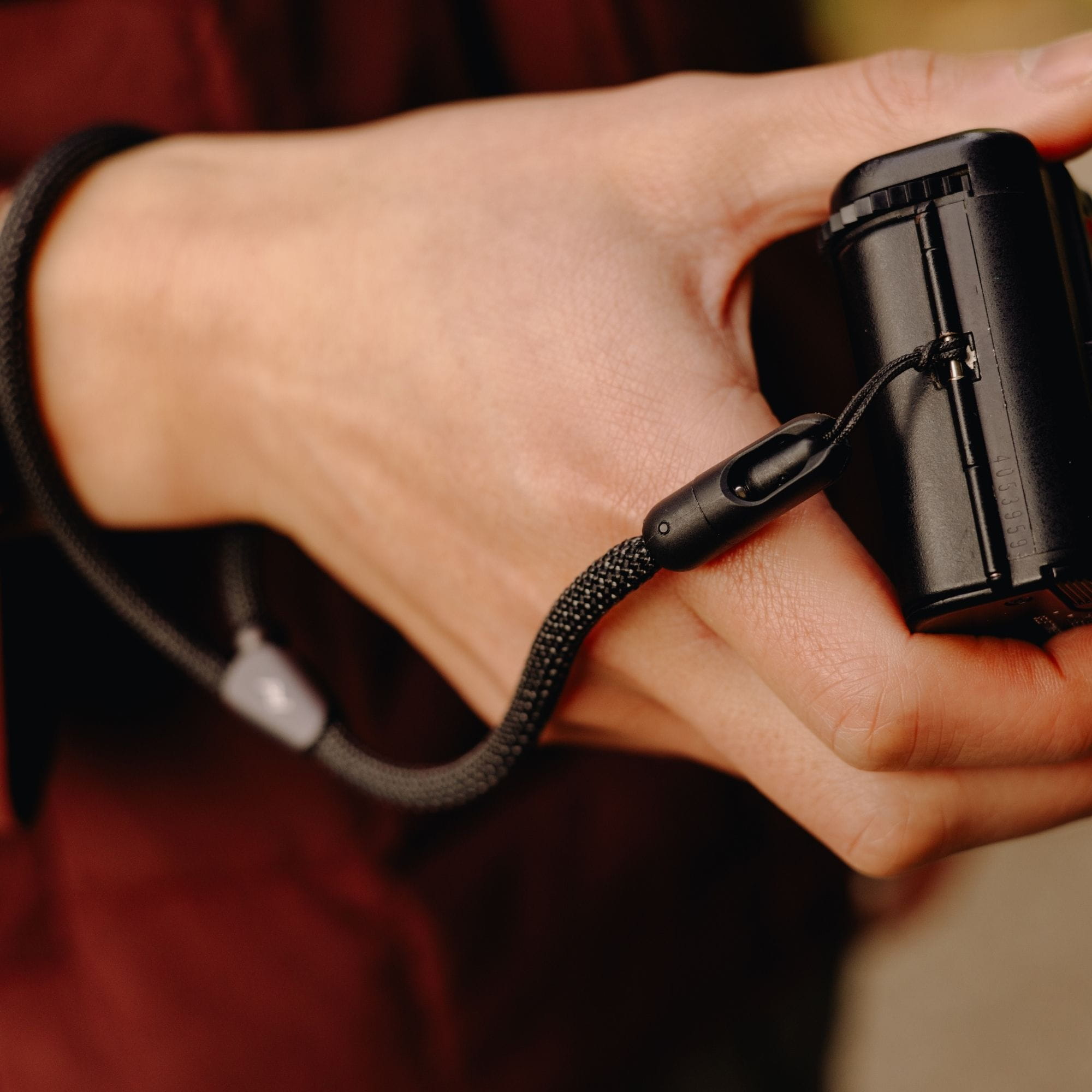 Das speziell entwickelte Seil kombiniert Nylon und Polyester in einer robusten Korbflechtstruktur. Diese Konstruktion sorgt für die optimale Balance aus Stabilität, Polsterung und leichtem Stretch. Sollte Dir Dein Gerät einmal aus der Hand rutschen, zieht sich die Schlaufe automatisch am Handgelenk fest und verhindert ein Herunterfallen. Ein eleganter Aluminium-Stopper erlaubt es Dir außerdem, die minimale Schlaufenlänge individuell einzustellen.