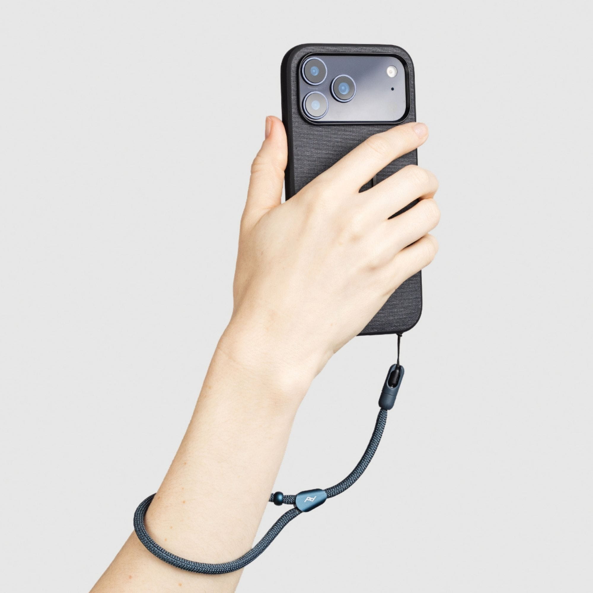 Schlanke Handschlaufe mit schnellem Micro-Anchor-System - die schnelle, stylische Verbindung zwischen Handgelenk und deinem Phone Case, der Kompaktkamera, Schlüsselbund, oder AirPods.