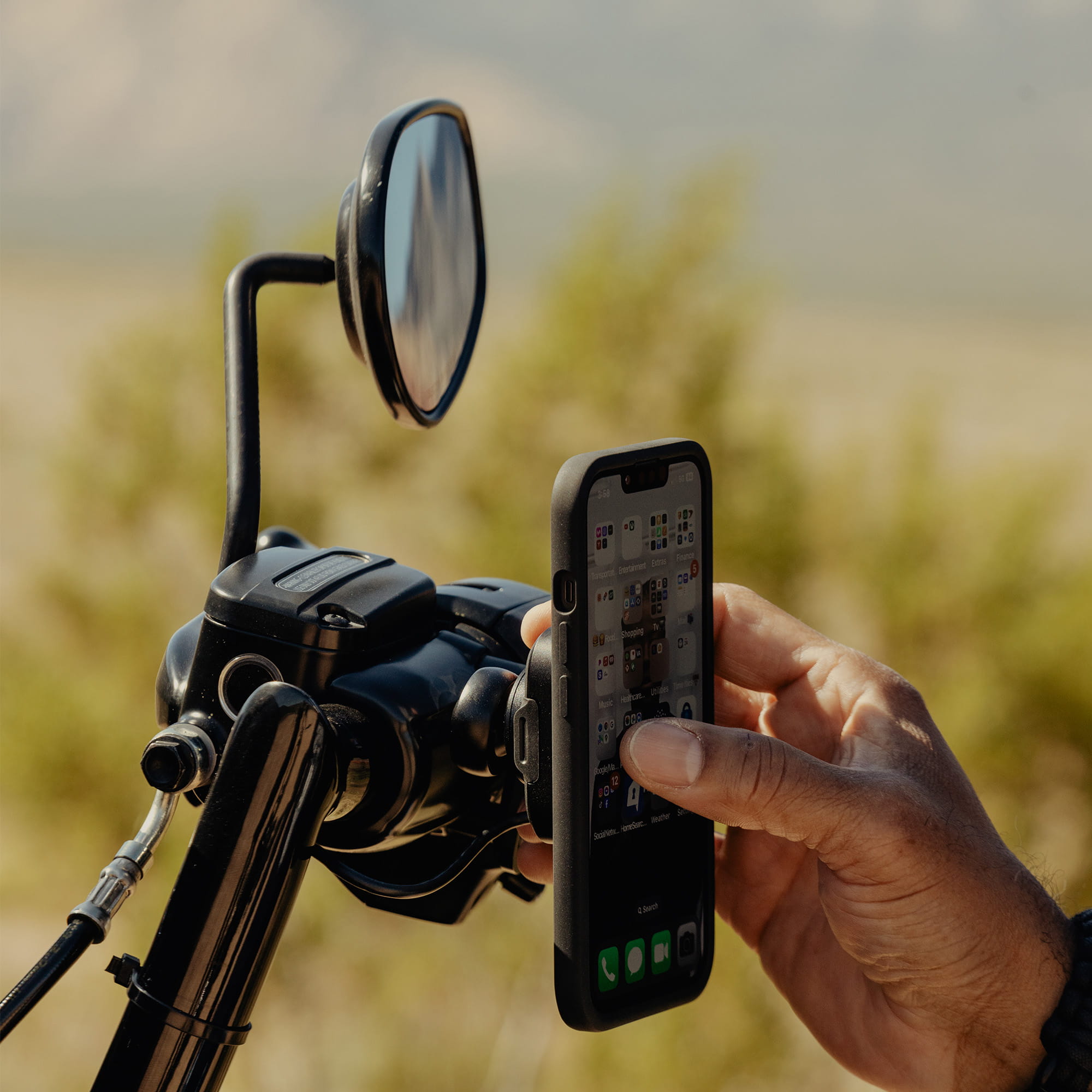 Hinweis: Du brauchst eine Everyday Fabric / Loop Case Smartphone-Hülle oder einen Mobile Universal Adapter, um den Motorcycle Stem Mount nutzen zu können.