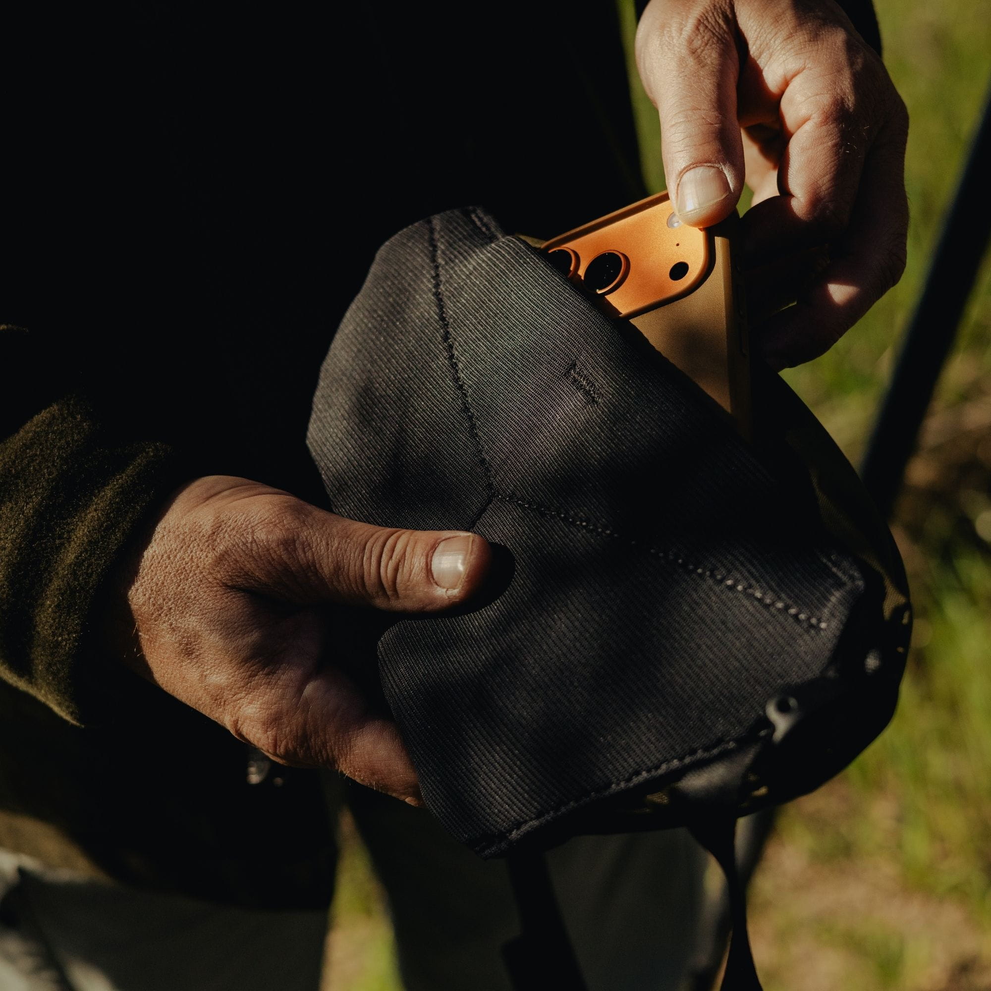 - Fasst Smartphone, Karten und Geldbeutel